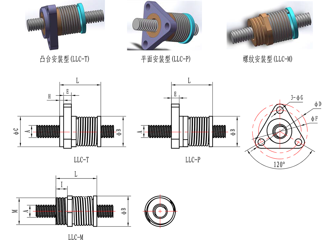 螺母型號(hào):XLM-LLC-*-ACME(A)×P “*”:T/P/M系列 A:絲桿外徑P:螺紋導(dǎo)程 |