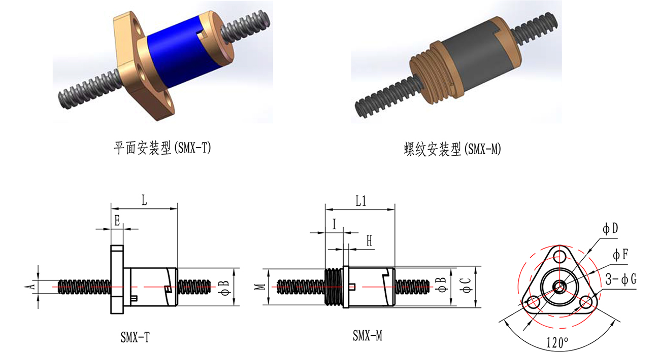 螺母型號(hào):XLM-SMX-*-ACME(A)×P “*”:T/M系列 A:絲桿外徑 P:螺紋導(dǎo)程 |